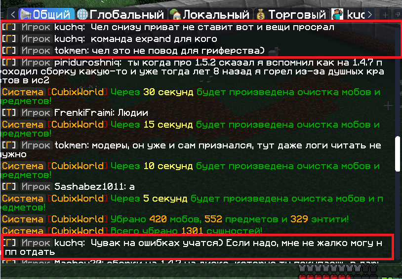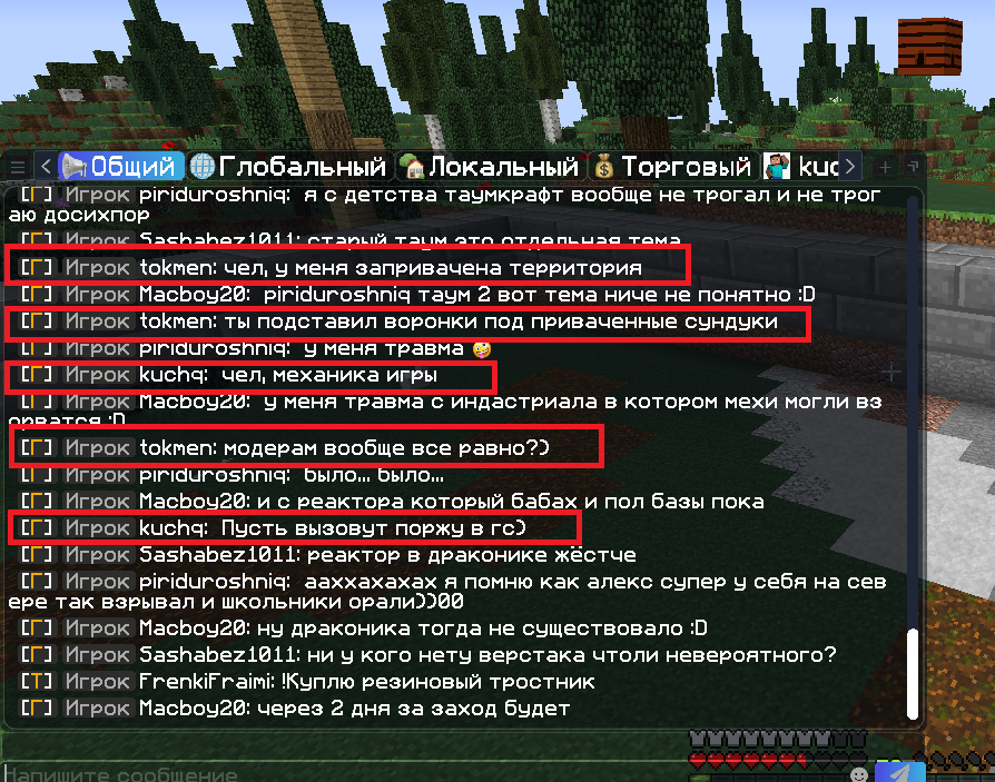 - Описание ситуации: Вчера вышел с сервера примерно в 21 час, сегодня зашел в 17:50 нет никаких вещей в сундуках. Под приватом прорыты ходы и проставлены воронки, все сундуки пустые, приват полностью обчистили. Я понимаю, что стоило ставить сундуки выше, но когда приватил, даже не думал что кто то будет заниматься подобным. Вещи можно не возвращать, хочу что бы нашли виновного и наказали.(Сундуки находятся в привате)