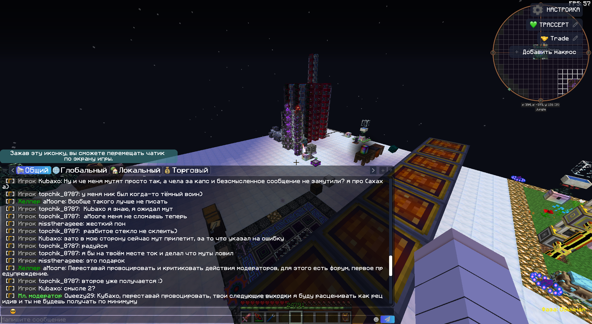 - Описание ситуации:Игрок в чате нарушил правила, я указал модерации что он нарушил и они не наказали его, хотя до этого меня без причины мутили 2 раза. И в итоге игрока так и не наказали, а меня засыпали угрозами. В свою очередь модератор скинул вину на хелпера и сказал что он не обязан мутить, тем самым отказываясь выполнять свою работу.