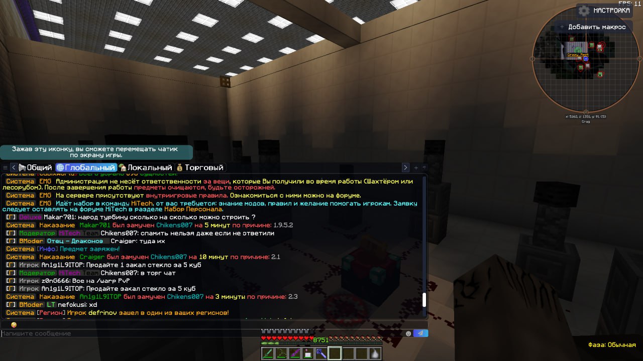 - Описание ситуации: Развитие событий произошло таким образом: играю я с тиммейтом по войс чату (он говорит, а я - слушаю, так как на работе, на рабочем компе - нету микрофона) отвечаю соответственно в локальном чате ему (ник тиммейта - Crazy_Meet), чтобы было понимание - играю с компьютера на работе, на котором даже нету внешней видеокарты, соответственно - у меня временами очень серьезно фризит. И вместо локального чата я отправил смс глобальный со словами "туда их", в этот момент модератор Chikens007 мутит игрока за что-то, следом вылетают мои слова, он думает что это насмешка по пункту 2.1 (он не виноват, я прекрасно его понимаю) - следом он меня мутит на 10 минут, я не могу объяснить ситуацию в /m так как мут. Снимаю мут - пишу, мол ты ошибся, я спутал чаты. Он пишет "окак" в том контексте (я по крайней мере так думаю - мол, хорошо). Опять же прошу обратить внимание, замутили одного игрока.