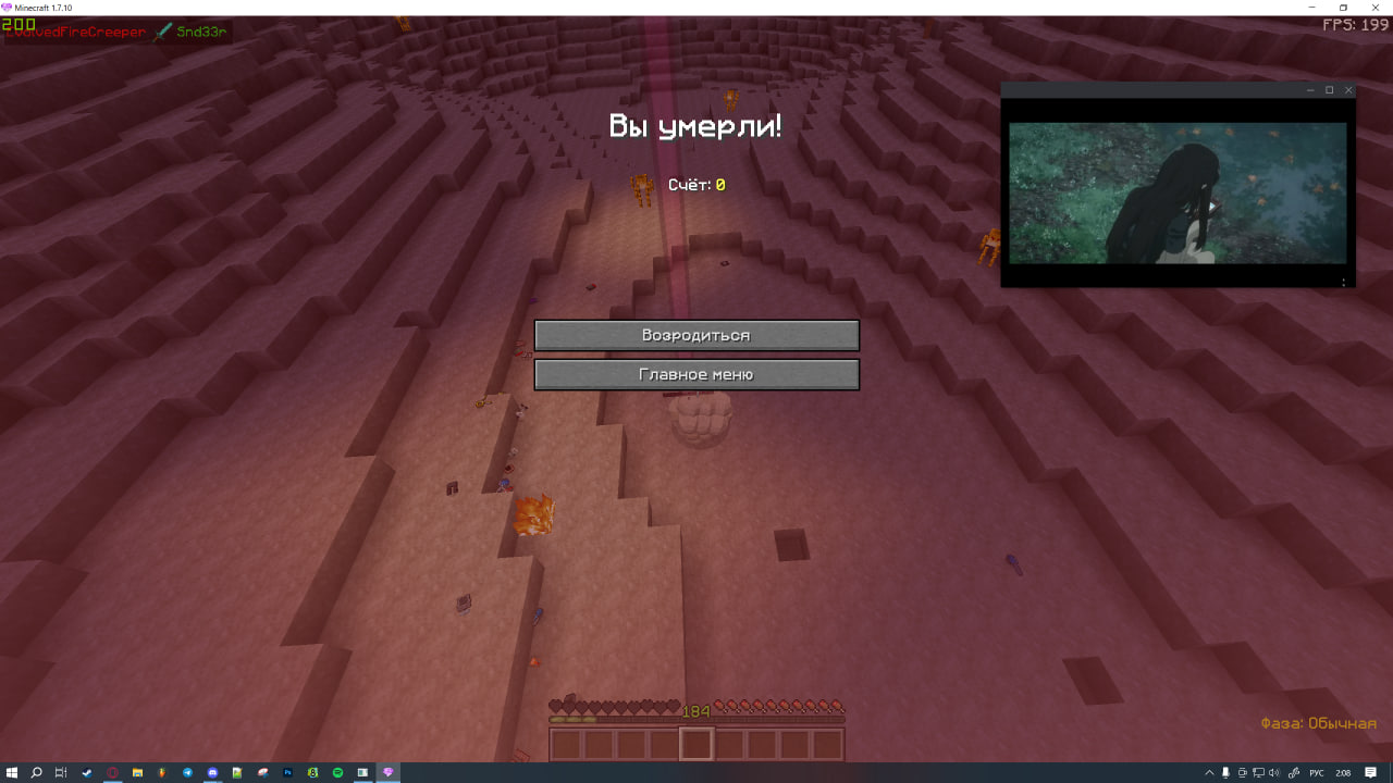 Прилетел на меркурий ночью, посадочный модуль долго падал. Из-за того что не мог выбраться пока он приземлялся, подошёл крипер и взорвал меня.
