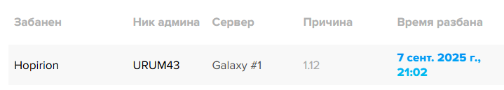 - Младший админ URUM43 забанил меня по правилу 1.12, которое не было мною нарушено.