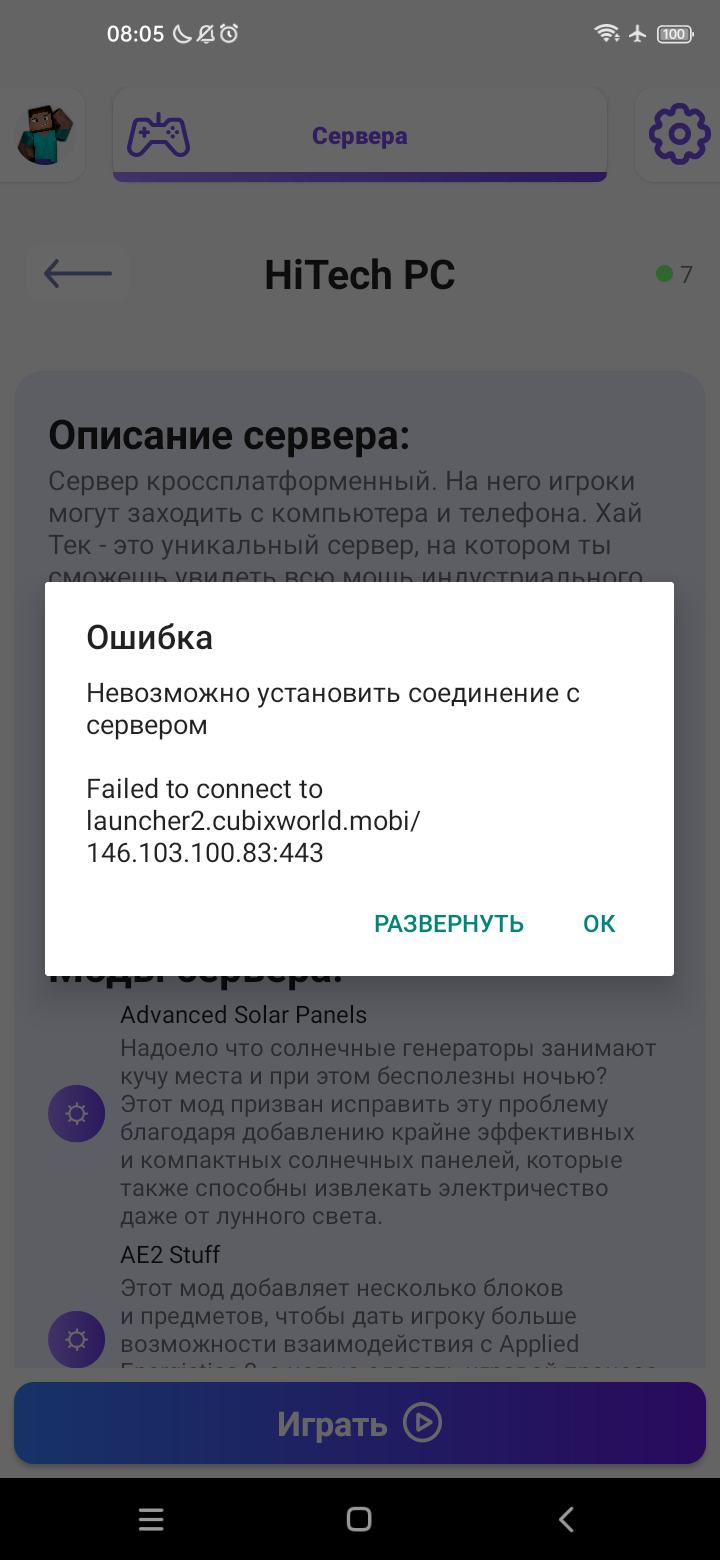 - Описание ситуации:не заходит в игру с телефона , возможные причины это либо сервер лёг, или проблема со SSL сертификатом, раз не работает порт 443