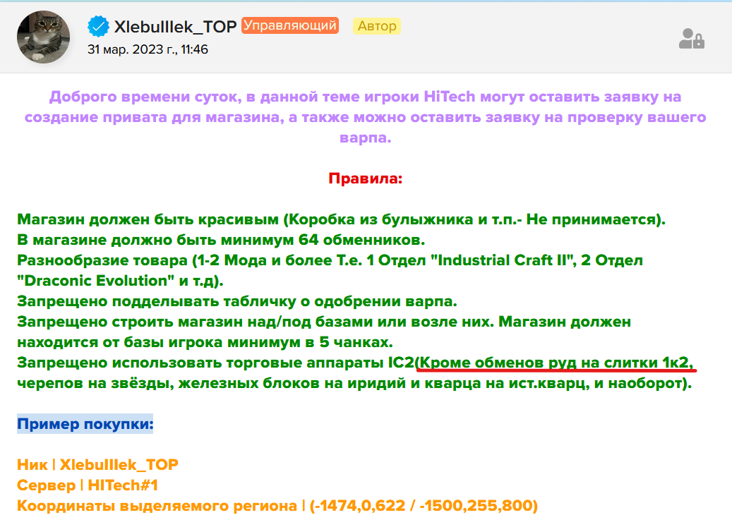 - Что это изменит?: это позволит легко и быстро обменивать ресурсы новичкам которые давно зашли после вайпа. А людям которые будут ставить обменники в магазине будет выгодно так как можно 1 руду(например железа) на 1 блок(железа) и будет выгода 7 слитков