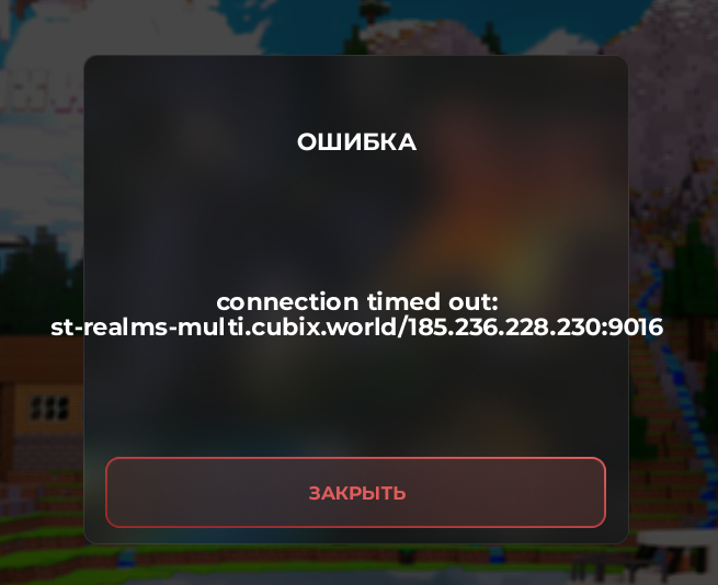 - Интересующий вас вопрос: После одного перезахода в лаунчер пропала иконка у сервера в майне, а так-же при попытке зайти на сервер выдаёт ошибку "Connection timed out:st-realms-multi.cubix.world/185.236.228.230/9016".