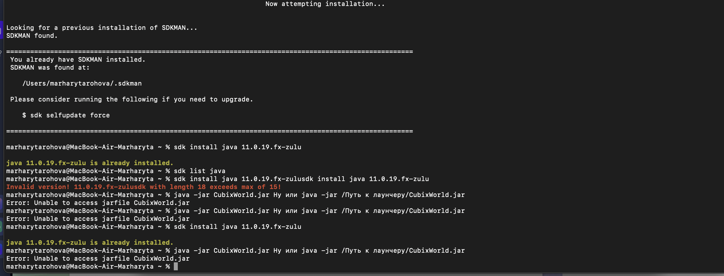 - Интересующий вас вопрос: пробовала вписывать коды в терминал но ничего не получается( файл джар просто не запускается