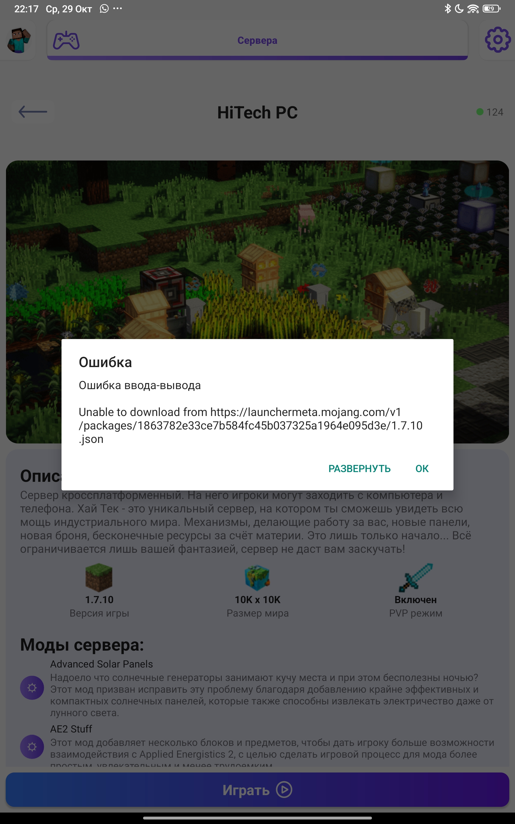 Интересующий вас вопрос: Здравствуйте, после выбора сервера и запуска, происходит такая проблема