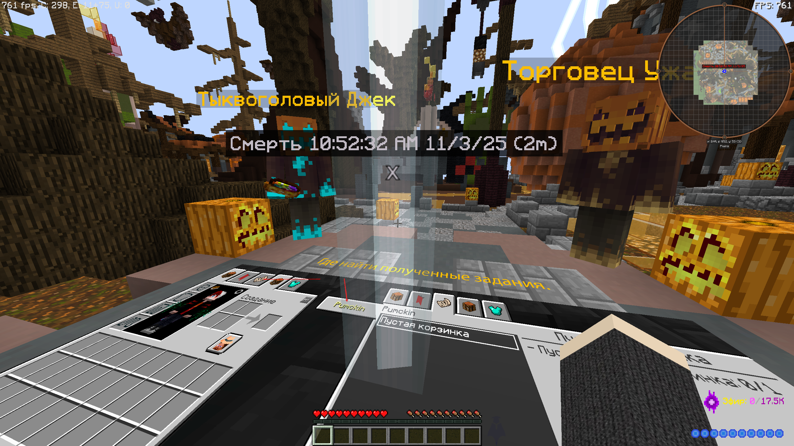 - Интересующий вас вопрос:перед тем как тп на варп Хелоуина, меня убили, по итогу я оказался на варпе, но уже без вещей, точка смерти стояла на варпе(скрин), перезашел, точки смерти уже нет, но есть на том месте откуда телепортировался(скрин), хотелось бы вернуть броню, маул, ихор кирку, мультик бож, и топор собирателя черепов