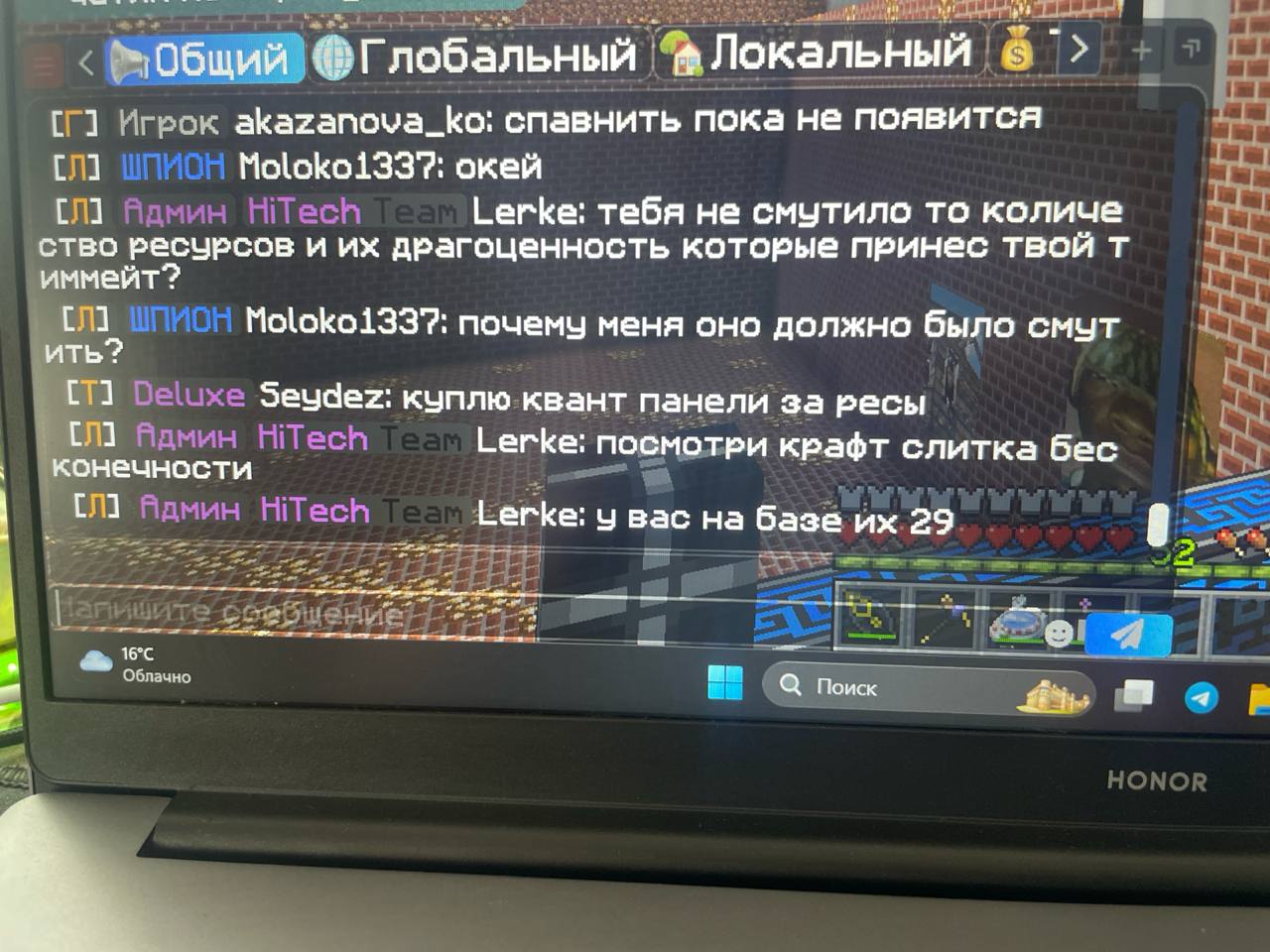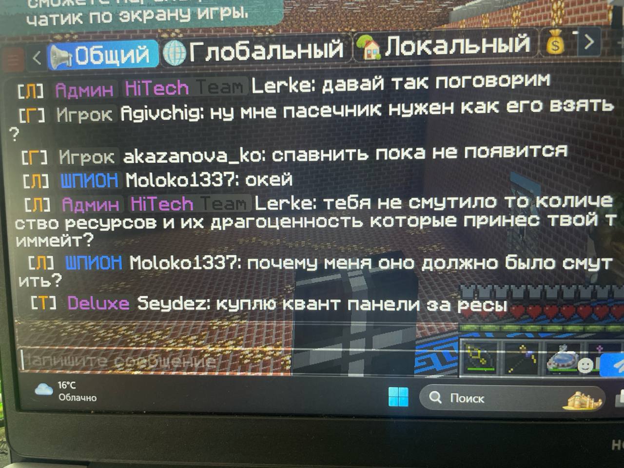 - Описание ситуации: Выдан бан за 1.9.1.0. На меня не поступало никаких жалоб, единственный аргумент администрации это что у меня много ресурсов. Помимо меня пострадал тиммейт Moloko1337. Считаю бан Выдан абсолютно необоснованно и у администратора предвзятое отношение ко мне. Так же администратор _snejock_ заодно с Lerke и будет всячески её покрывать. Ссылается она на тикет https://download.kalataka.ru/forum/topic/50718-podozrenie-na-krazhu-paneley за который я свое получил и у меня отобрали украденные ресурсы. Ресурсы имеющиеся на данный момент добыты честным путем. Присутствует множество скриншотов неадекватности администратора, не даёт сюда их скинуть