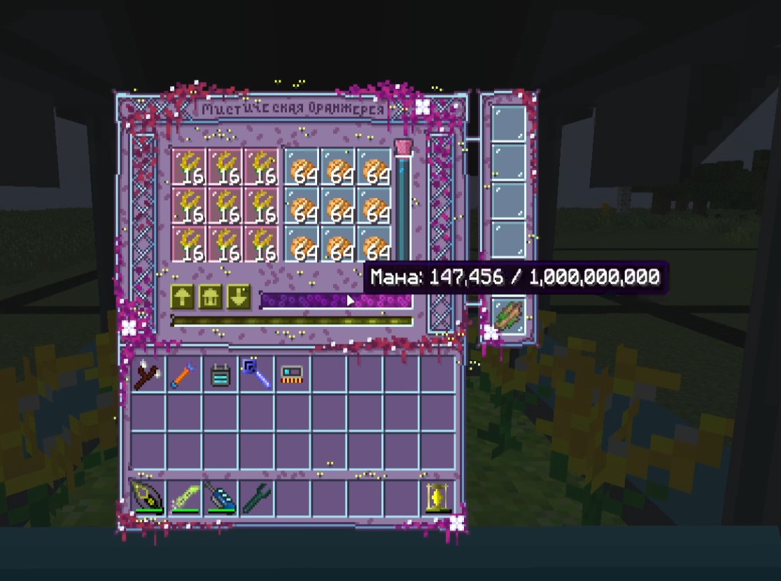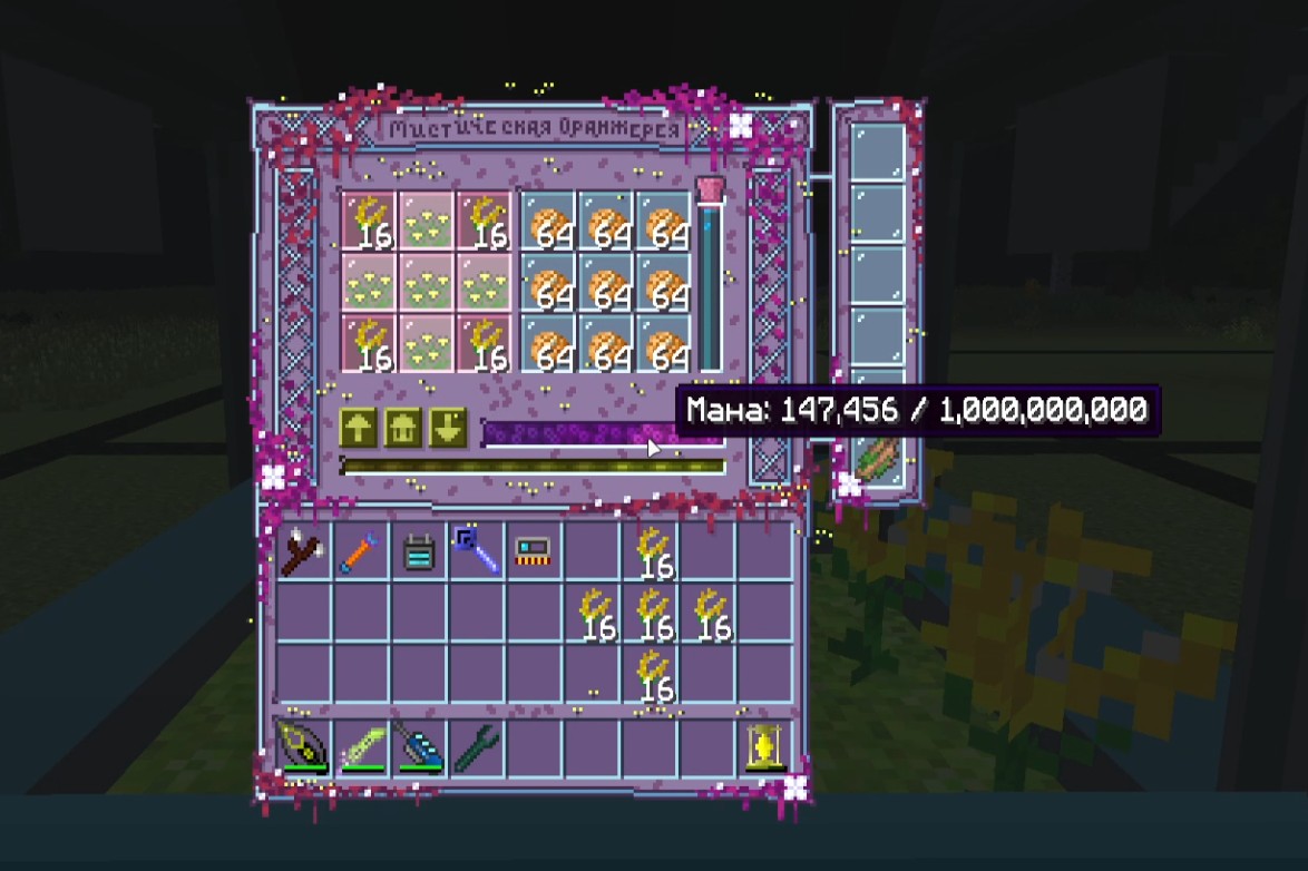 - Также тайная роза производит в оранжереи всего 100 маны, в то время как на земле 2500 и она тоже обрабатывает только 64 цветка, также как и дневной цветок и т.д