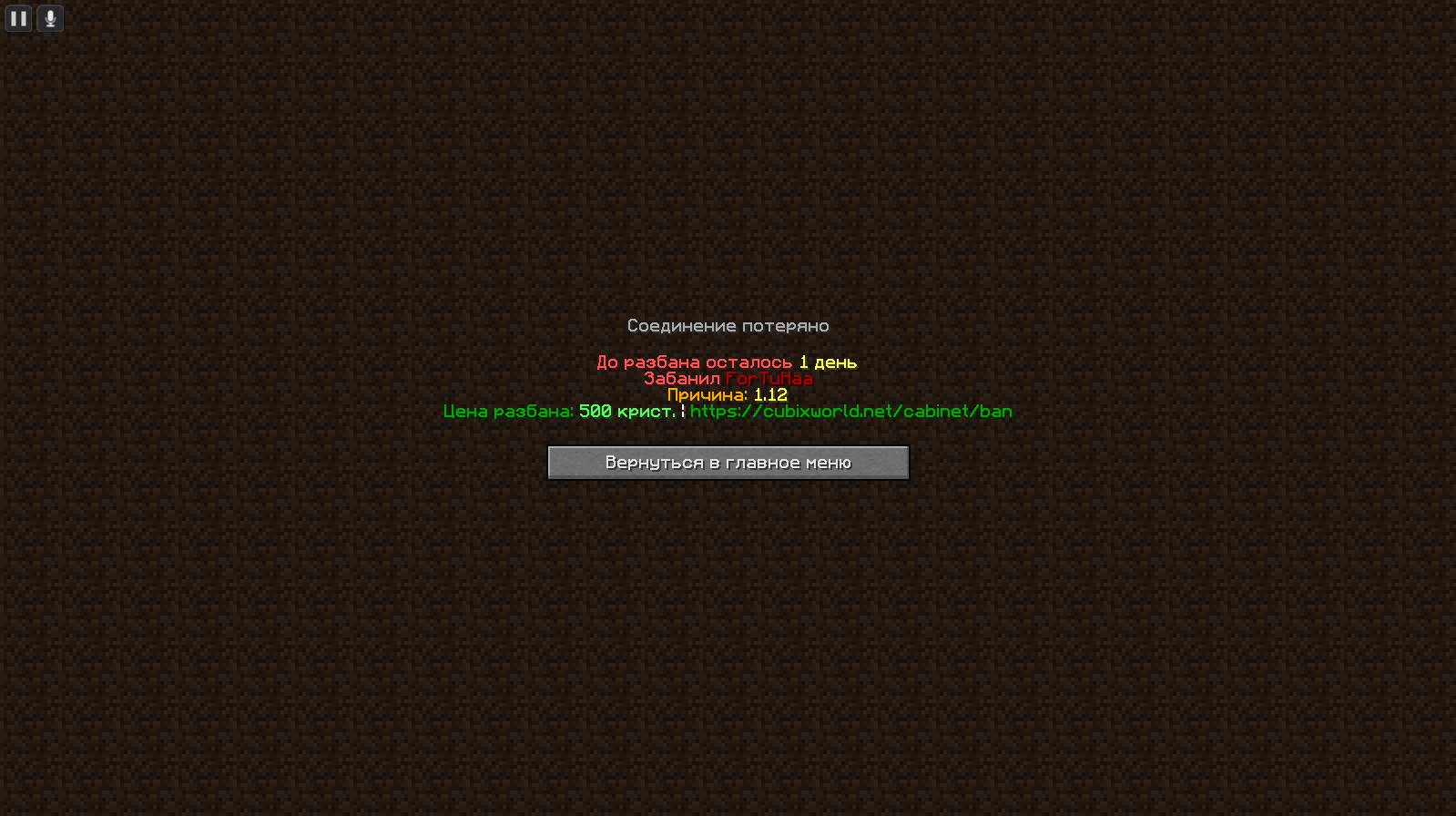 - Бан я получил за плащ (Флаг России) в пункте 1.12 я не нашел ни одного запрещения использования его. Модер под ником ForTuHaa сказал мне, но после того как я ему переслал 1.12 он просто ушел на минут 20, после телепорт ко мне сказал что это запрещено и выдал бан без объяснения ситуации. Я понимаю что сейчас происходит и т.д. Но в правиле об этом нету ни строчки. Просьба разбанить и корректировать правило 1.12 чтоб не было таких нелепых причин и банов.