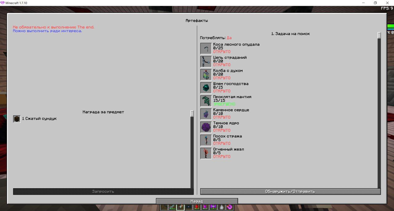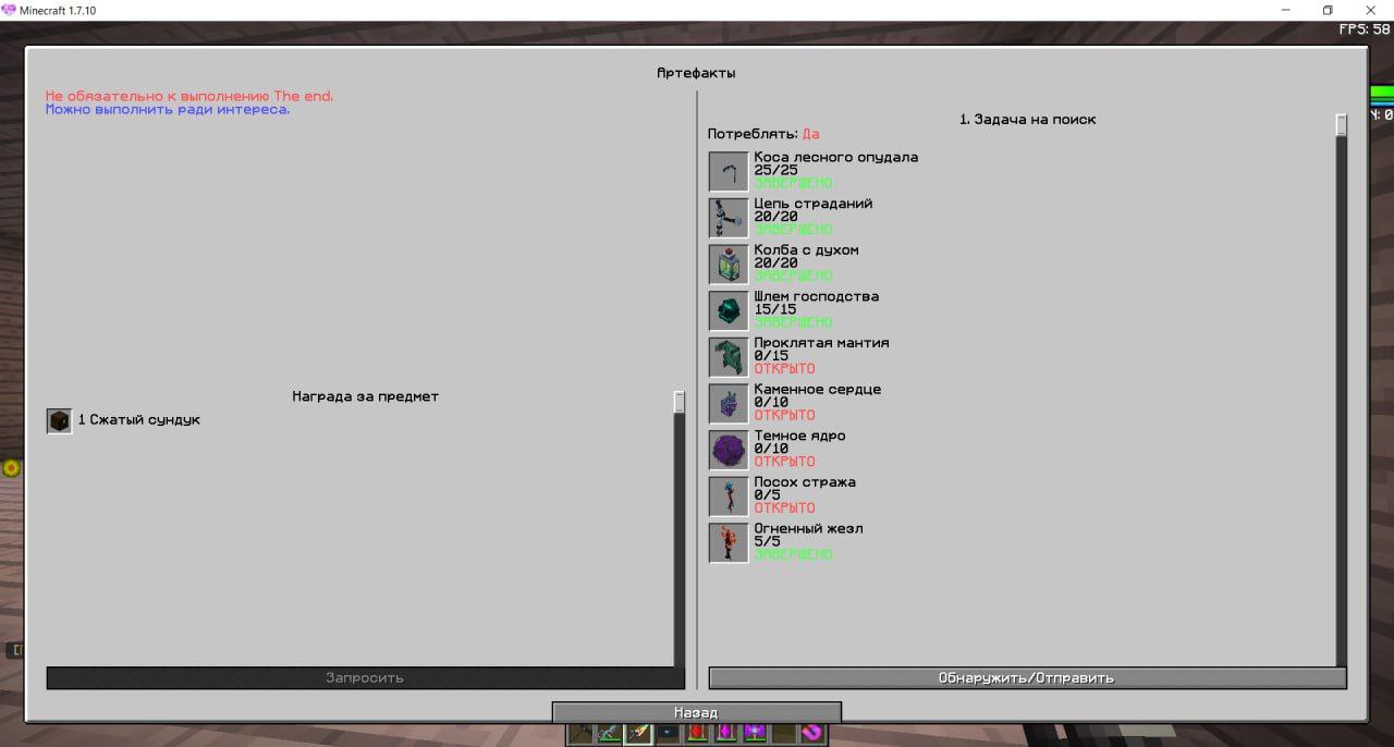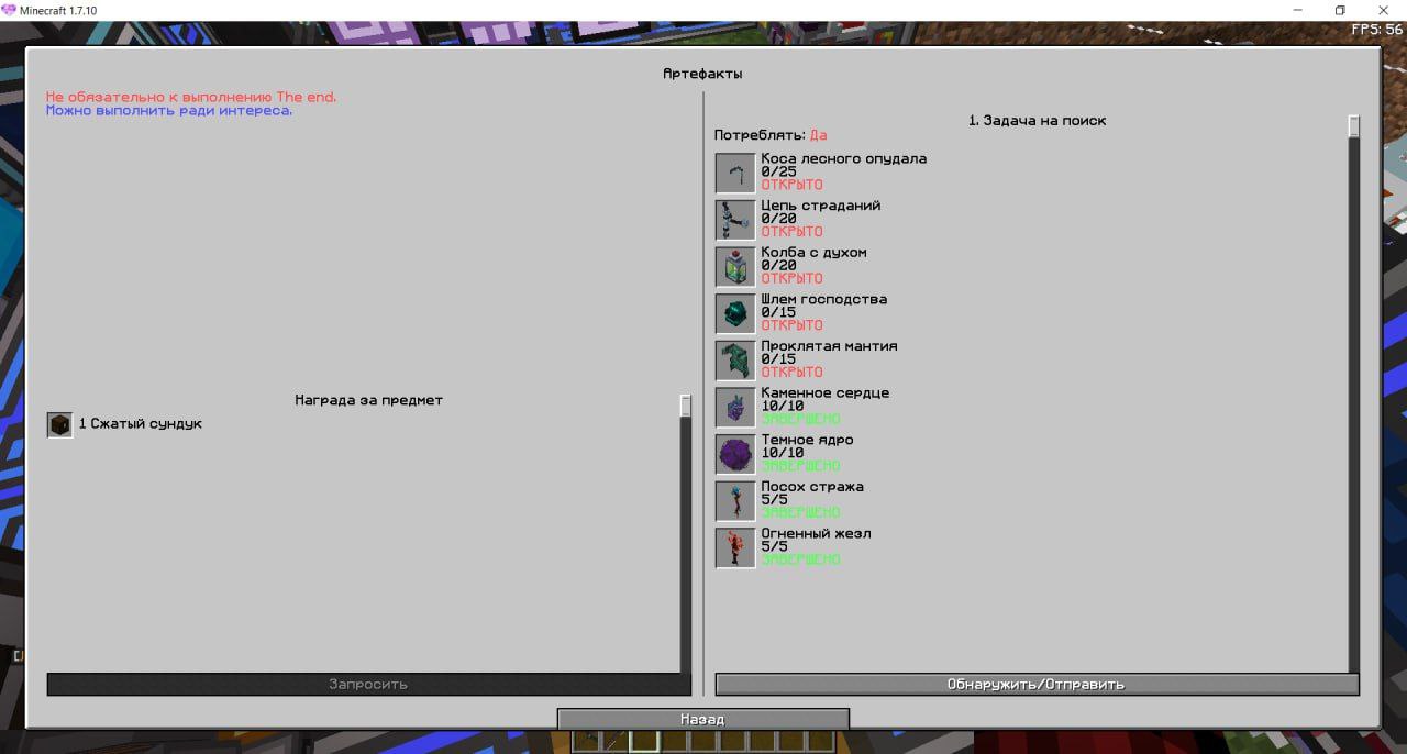 Рассмотрено Сломался квест "Артефакты" на сундук с землёй..