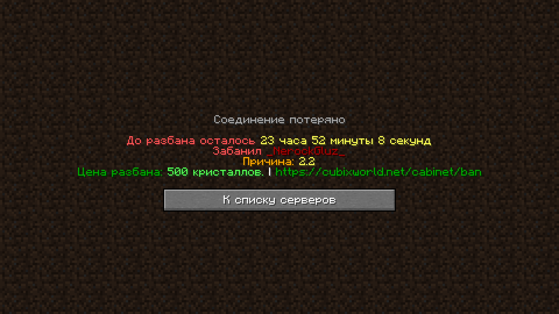 Описание ситуации: был диалог в глобал чате между игроком с ником 6_Relax_9 и админом Your_Soul(бан Выдала не она), в шутку админом было сказано в сторону 6_Relax_9 /я его могу наказать другим способом)))/ на что я в тему этого разговора написал /релакс брей п,,,у и ноги соул уже в дороге/ что не является нарушением 2.2(Запрещена любая неуместная критика/оскорбление/унижение/принуждение/провокация/сообщения не по теме/троллинг в сторону Команды проекта или самого Проекта (сервера) в целом.) за которое меня сначала замутили на 3 часа а потом забанили на 1 день так как это была просто шутка между игроками в целом а не сервером или команды сервера.