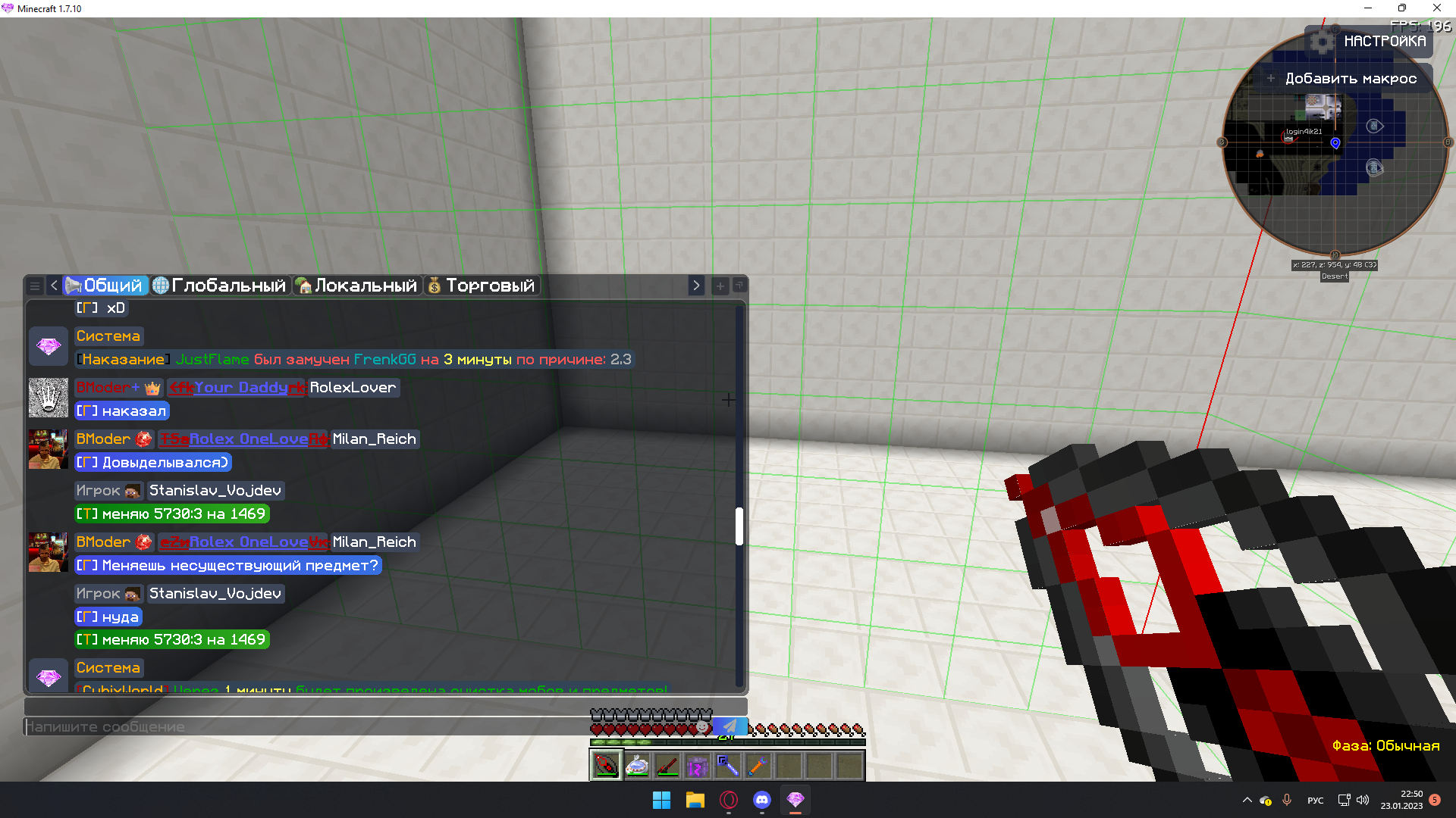 - Описание ситуации: Суть моей жалобы в том, что я полноценно считаю что человек который является уже частью персонала не понимает элементарных нарушений по типу троллинга от определённых лиц, а именно сама ситуация к примеру: двое игроков под никнеймами: Milan_Reich и RolexLover потролили меня фразами "наказал" и "Довыделывался", после моего мута я поинтересовался у Модератора FrenkGG почему он проигнорировал нарушение правил проекта а именно правила 2.1 (UPD сначала ошибся и сказал про 2.2), после он выдает наказание только одному участнику данного троллинга и считает что игрок под никнеймом RolexLover не нарушил правило 2.1 (UPD он отреагировал на нарушение только после моего вопроса про нарушение)