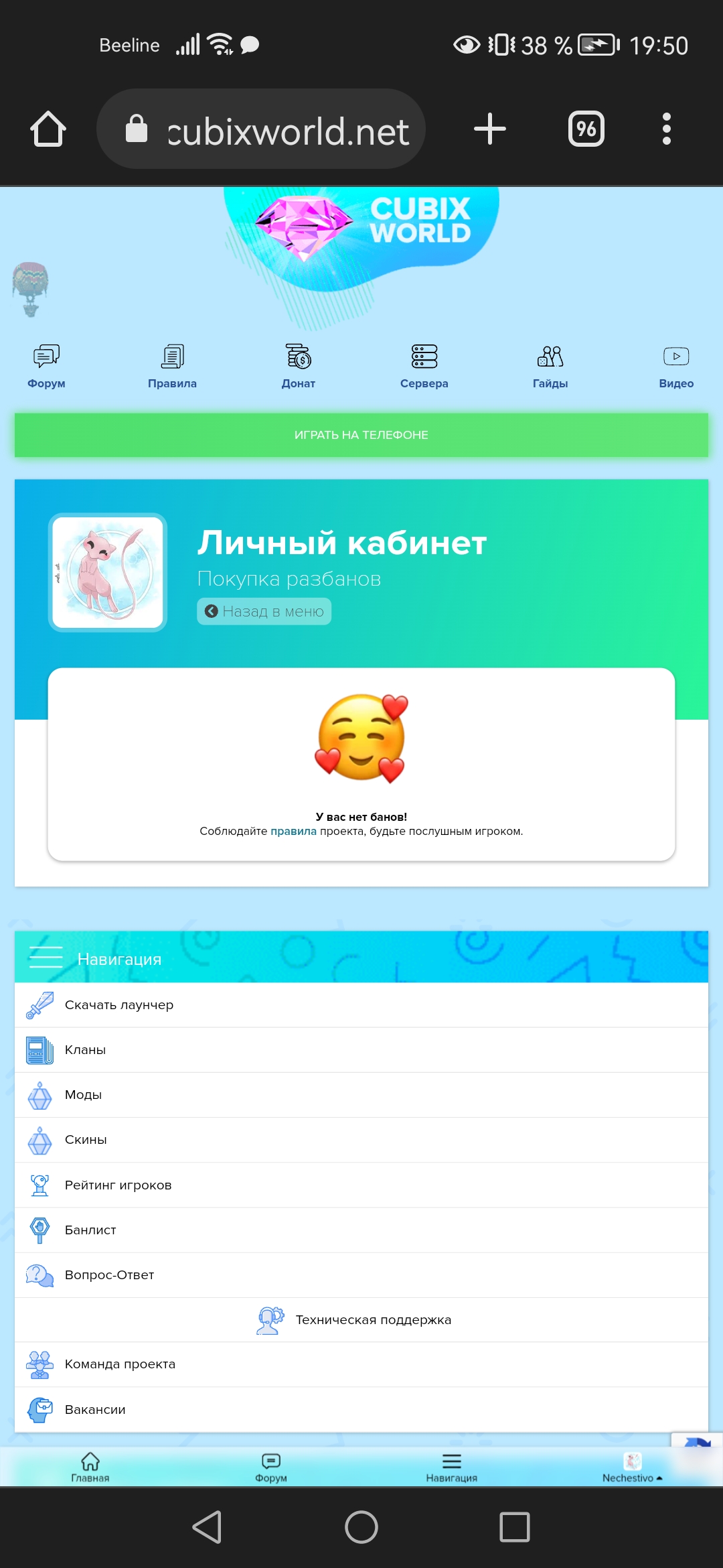 - Описание ситуации: Я сидел спокойно рыбачил, смотрю он ко мне тепнулся и потом мне прилетает бан, я зашёл на сайт и написано что банов у меня нет, я перезашёл в игру и смотрю он всем подряд прописал бан и остался на сервере с кем-то в 3 в онлайне, просто так перебанил весь онлайн на сервере, мне кажется что его по видимому взломали раз они там в 3 с кем-то остались, он ещё просил других добавить его в свои регионы