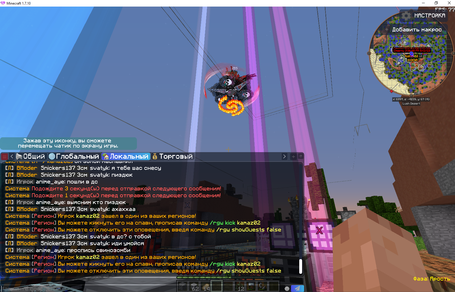 - Описание ситуации: прилетел в рг без приглашения, заспавнил зомби, потом тпал меня и кента в регион, чтобы они нас убивали, перешёл на личность, когда я сделал тоже самое, то он дал мне мут, кайфовый модер), ещё угрожал рг снести