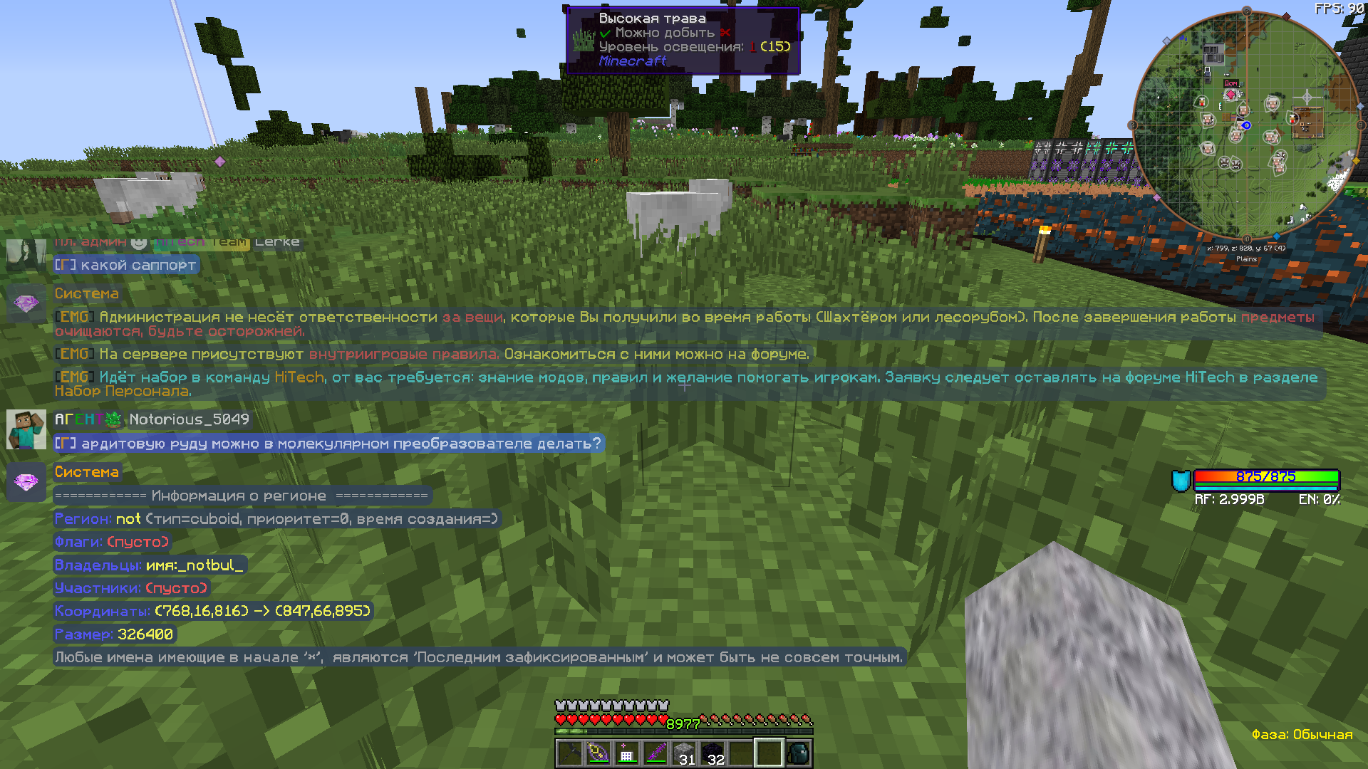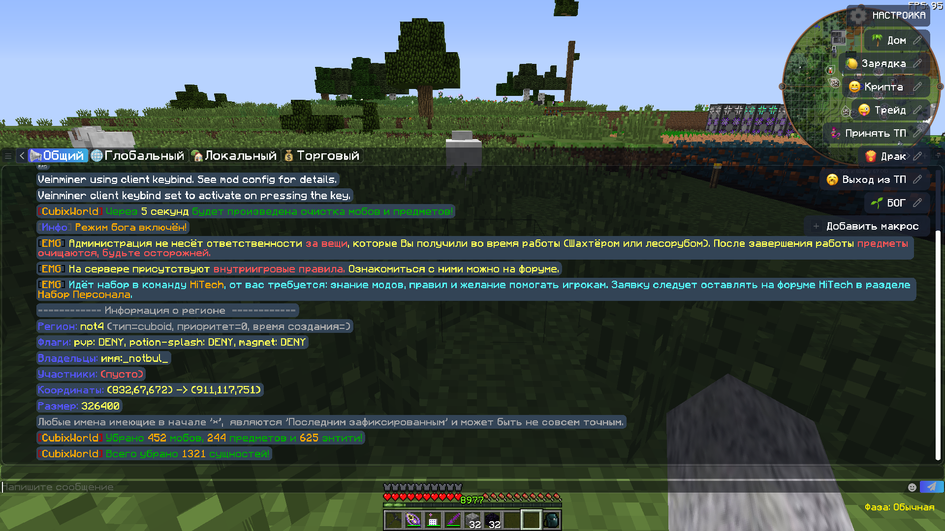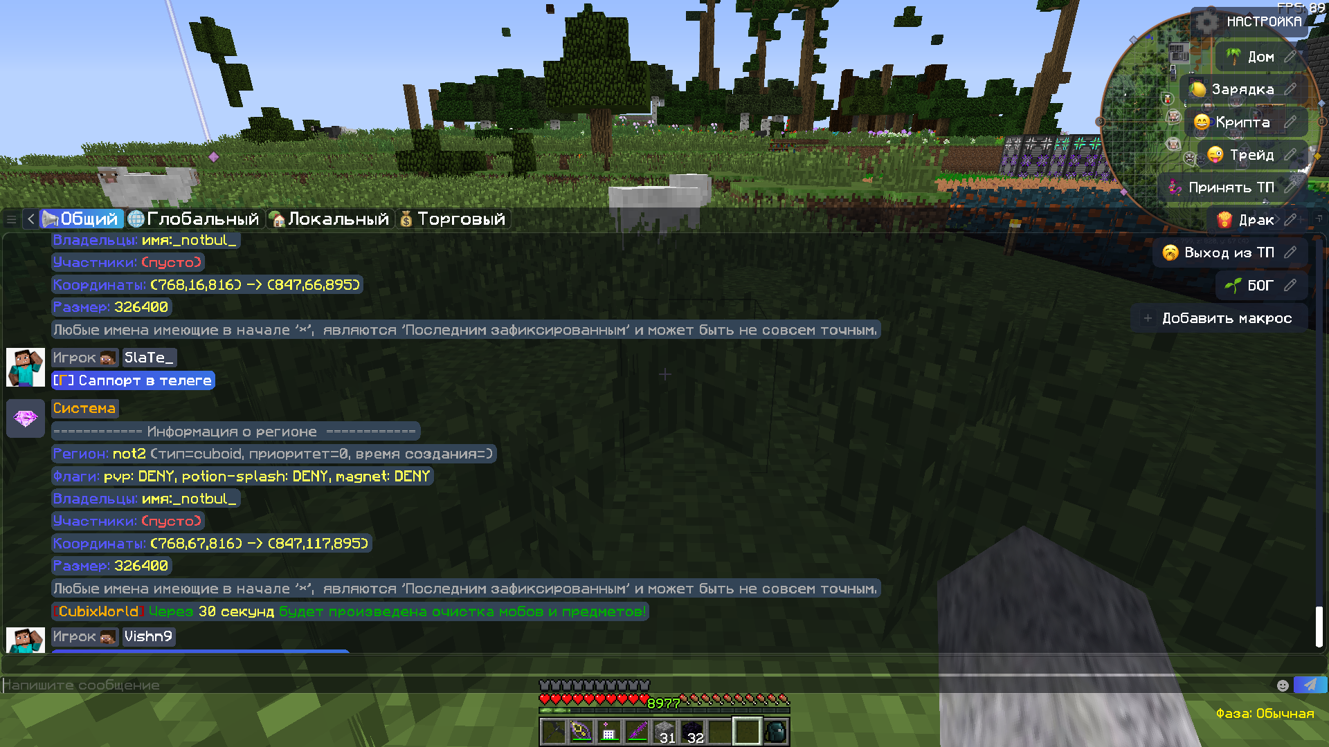 3. Описание ситуации: Создал регионы впритык к моему. Регион "not2" ( 768 67 816 - 847 117 895 ), под ним находится регион "not" ( 768 16 816 - 847 66 895 ). Также от этого игрока есть ещё регион, находящийся через 15 блоков от соседского ( нормального ) региона, "not4" ( 832 67 672 - 911 117 751 ), под ним также расположен "not3" ( 832 16 672 - 911 66 751 ).