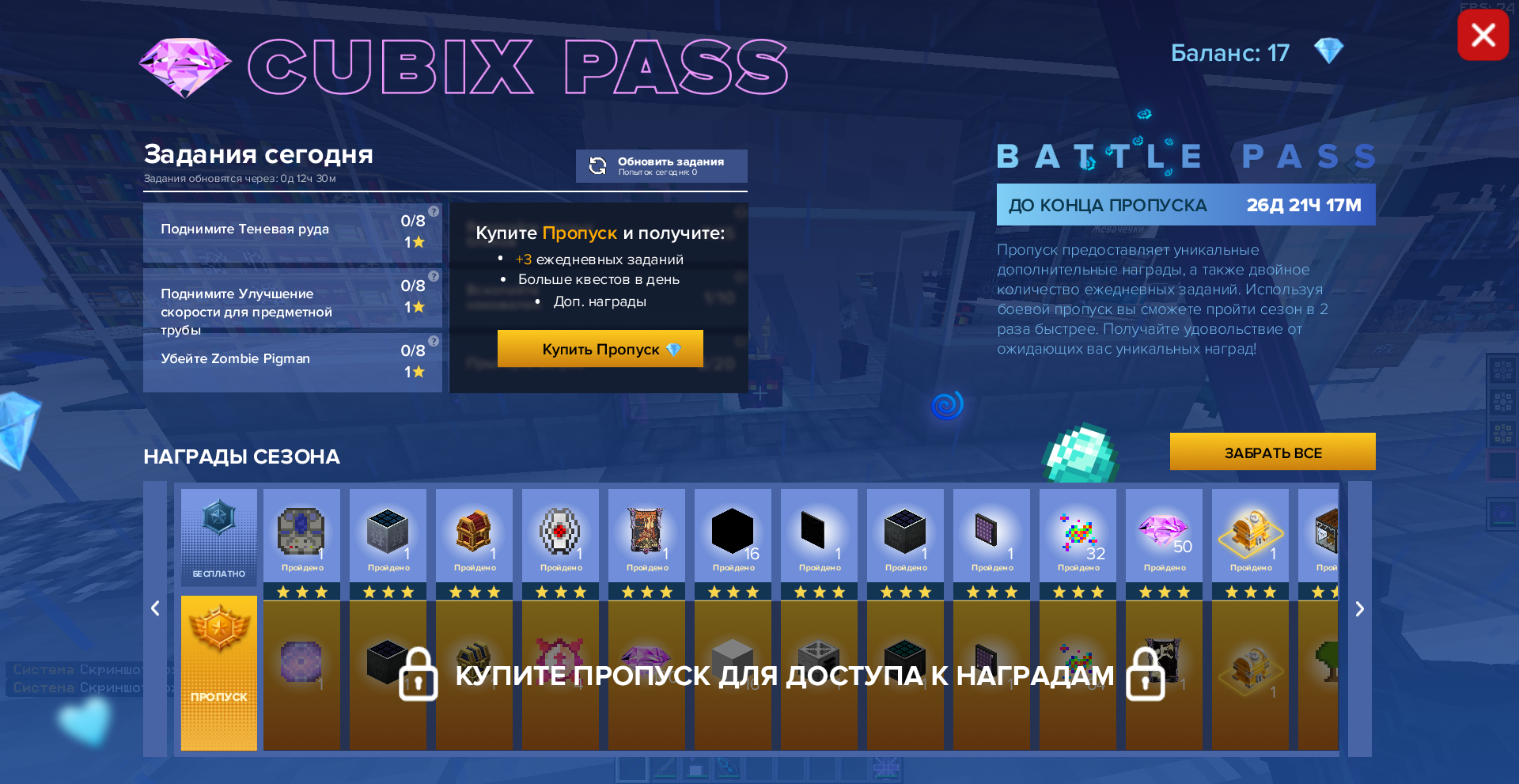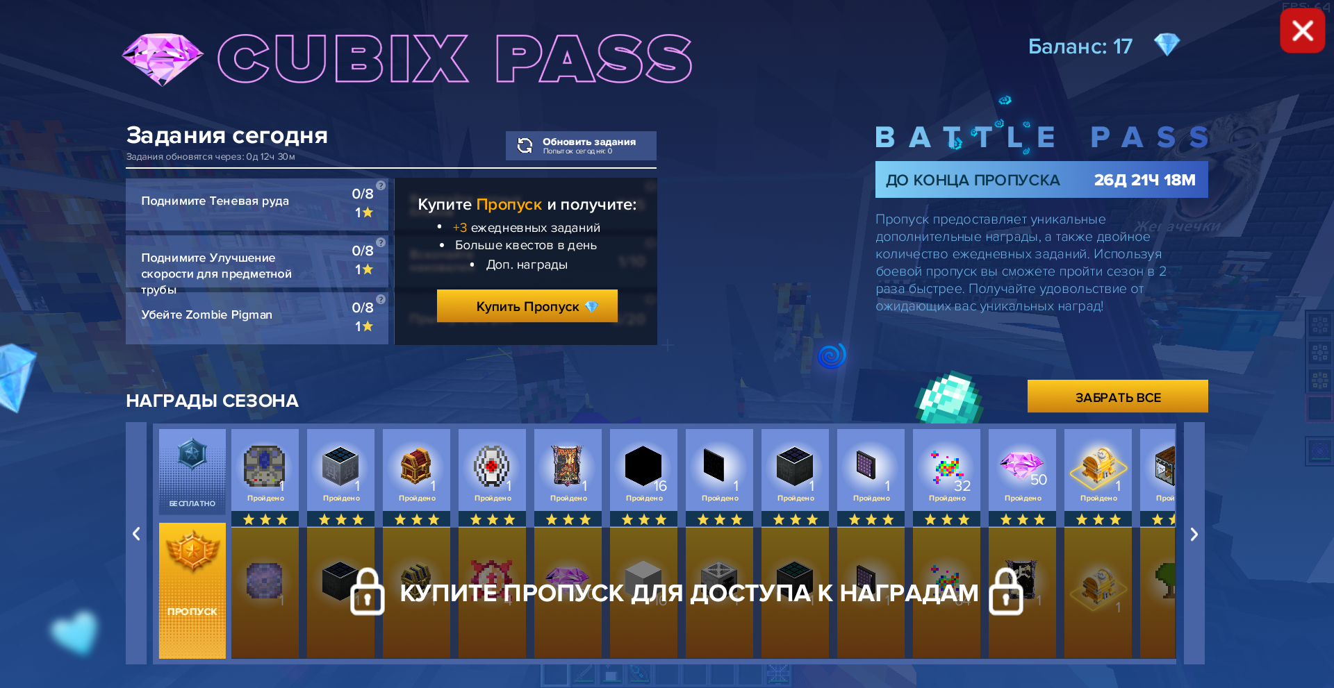 - Интересующий вас вопрос: Зашёл в игру и 1 делом решил закрыть задания бател паса, решив выполнить самое быстрое убийство 8 свино зомби, но когда я убил их и проверил не засчиталось, попробовал перезайти не сработало, а обновлений заданий они не обновились(кстати это очень частая проблема особенно на ранних этапах игры когда нужных материалов для задания нет), вот хочу спросить что не так, если проблема в игре то прошу решить её, 1 звезду я пропущу, но если так будет часто то это станет проблемой.