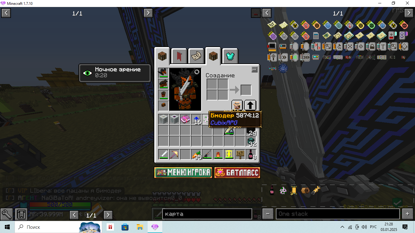 - пропали дк нагрудник, ботинки; нано; очки откровения; виверн поножи; мультитул; ядро редкого кейса; 2 иридьевых усиленных меча, 1 был зачарен на добычу 3, удочка с крючком бесконечности, кабеля; 16 флакон для душ; флакон для душ с рамом внутри 15 звезд;бесконечности обсидиан тотемы и сломанный спавнер ио; ну и на скрине видно остальное, если есть возможность можно мне катушку бесконечности обсидиан тотемы и сломанный спавнер ио